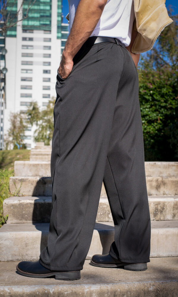 Cuenta con dos bolsillos laterales y cintura media, lo que lo hace versátil para usar tanto con buzos como con camisas o remeras.