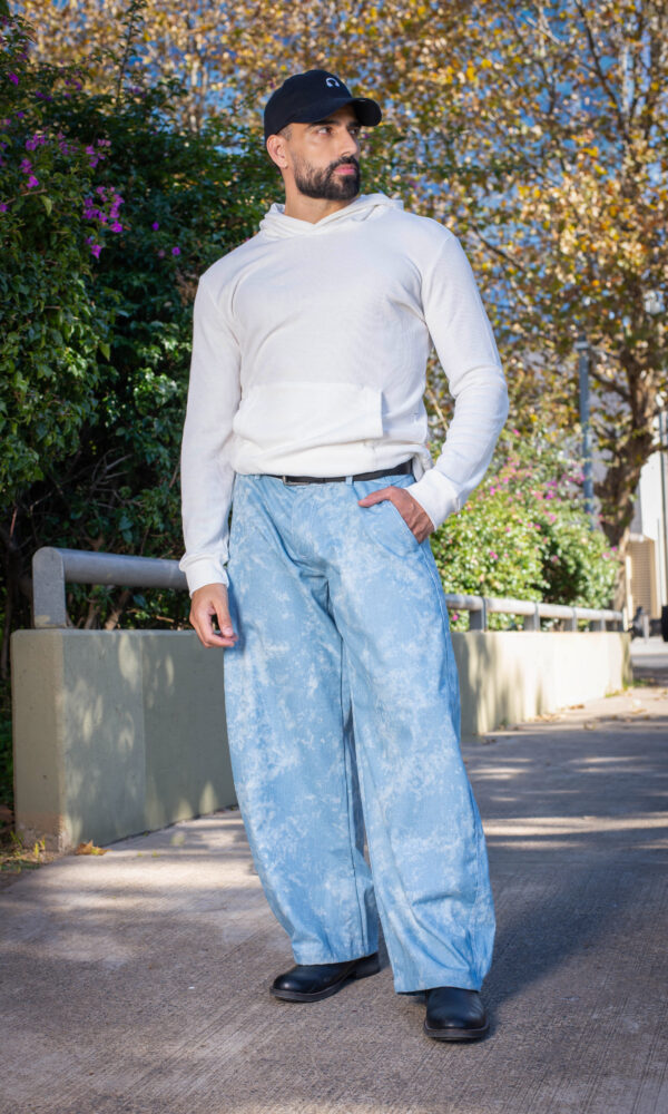 Este modelo está confeccionado en jean liviano, con un lavado marmolado que lo hace destacar en cualquier look. Su corte es oversize y relajado, con pierna ancha y estructura suelta, ideal para quienes buscan comodidad sin perder estilo.