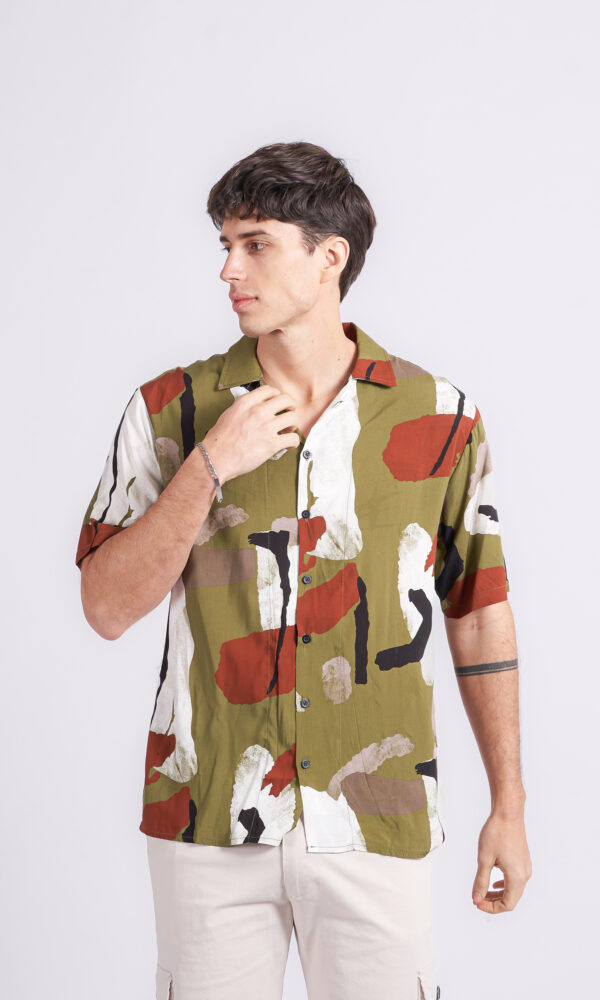 El estampado abstracto en tonos naturales añade un aire sofisticado, inspirado en el arte contemporáneo, que te permitirá destacar sin esfuerzo. Ya sea para una salida casual o un día de playa, esta camisa combina comodidad y estilo en una prenda versátil, pensada y hecha con dedicación para ti.